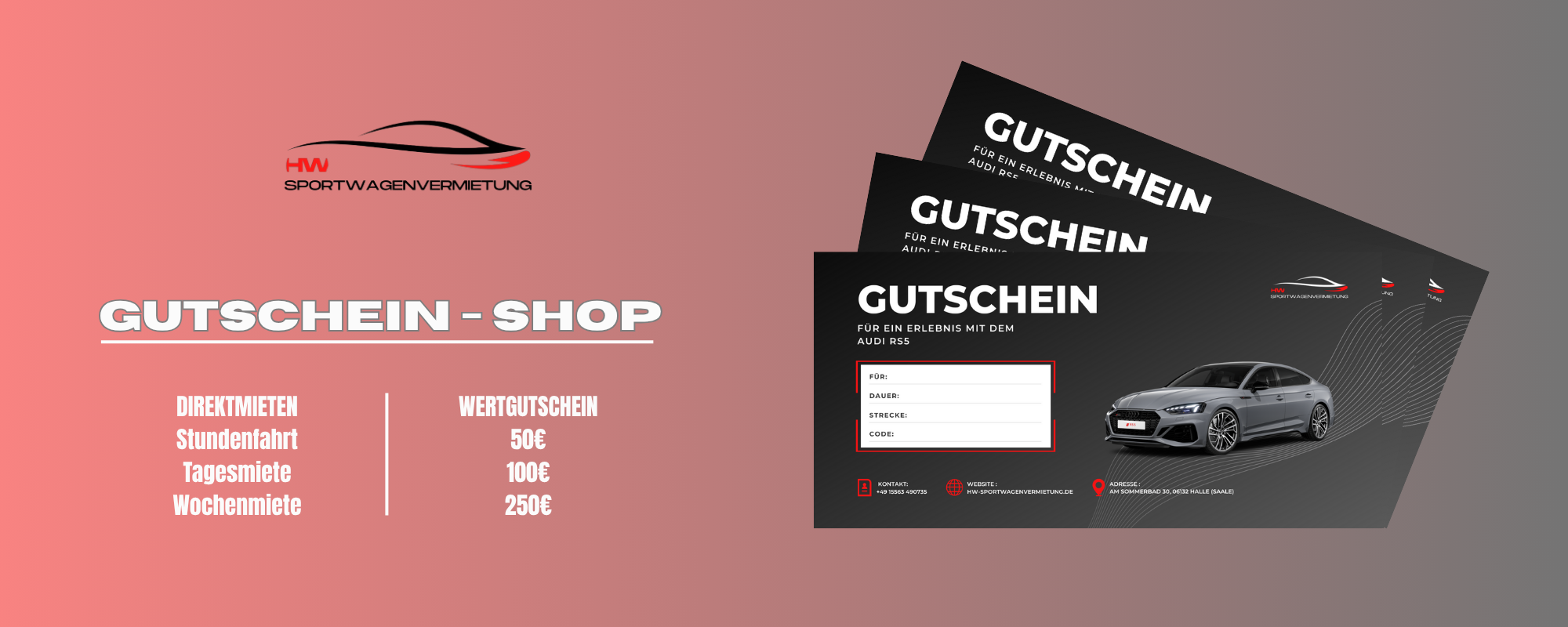 Schenke pure Fahrfreude! Mit unseren Gutscheinen verschenkst du ein unvergessliches Erlebnis am Steuer eines unserer exklusiven Sportwagen.